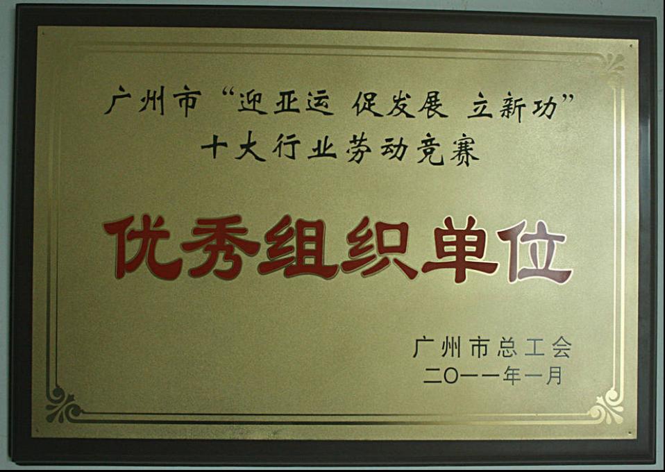 大会授予 广州市美容美发化妆工会联合会等单位“广州市‘迎亚运、促发展、立新功’十大行业劳动竞赛优秀组织单位”荣誉称号。