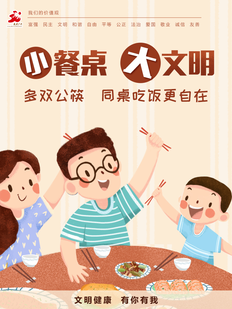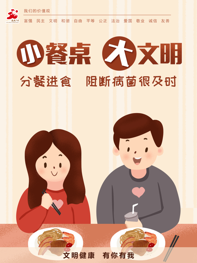 让我们更加注重科学饮食,更加注重健康卫生,积极推行公筷、公勺、分餐制,让卫生文明的用餐方式惠及每一个人;疫情防控期间,更应该注意使用公筷、公勺,让我们积极行动起来,一起远离疾病,向文明出发!