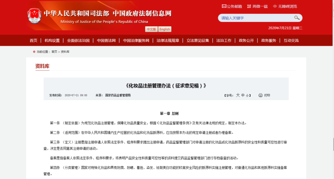 2020年是行业格局重塑的一年,也是行业监管革新的一年。2020年刚跨年不出三日,行业监管就迎来喜讯,历时五年,国务院终于审议通过被誉为化妆品行业“基本法”的《化妆品监督管理条例(草案)》。6月29日,行业“新规”《化妆品监督管理条例》(下称“新《条例》”)由国务院正式公布,并将于2021年1月1日起施行,同时废止1990年1月1日起施行的《化妆品卫生监督条例》。新《条例》规定了化妆品的功效宣称应当有充分的科学依据,换句话说,品牌不能再空口宣称产品有什么功效,要拿出相应的“证据”来佐证。产品宣传规范化,不仅能为行业营造一个良好的营销环境,也能促使行业向更良好的方向发展。继新《条例》正式发布之后,近半年的时间内,我国也陆续发布了十多套相关配套政策密集征求意见,辅助新《条例》的实施,对化妆品市场进行全方位的监督和管理。比如:7月21日,国家药品监督管理局发布《化妆品注册管理办法(征求意见稿)》和《化妆品生产经营监督管理办法(征求意见稿)》,并向社会公开征求意见,两者均拟以市场监管总局部门规章对外发布。前者进一步明确化妆品及其新原料的注册备案管理工作程序和要求,后者则对《化妆品监督管理条例》中化妆品生产、经营监管的各项要求及其法律责任作出规定和细化。7月29日,国家药监局化妆品监管司发布了《化妆品安全评估技术导则(征求意见稿)》和《化妆品分类规则和分类目录(征求意见稿)》;8月28日,《化妆品注册与备案资料规范》(征求意见稿)和《化妆品新原料注册与备案资料规范》(征求意见稿)公开征求意见;9月21日,国家药监局化妆品监管司发布《化妆品标签管理办法(征求意见稿)》,对于化妆品包装上的标签设计进行规定和要求;9月28日,国家药监局综合司发布《化妆品生产质量管理规范(征求意见稿)》《化妆品不良反应监测管理办法(征求意见稿)》和《化妆品抽样检验管理规范(征求意见稿)》;11月5日,国家药监局网站发布《化妆品注册备案资料规范》(征求意见稿)、《化妆品新原料注册和备案资料规范》(征求意见稿)和《化妆品功效宣称评价规范》(征求意见稿);11月13日,国家药品监督管理局发布《牙膏监督管理办法(征求意见稿)》。在消费快速升级和行业加速洗牌的大背景下,面对即将实施的“最严”行业新规,明年的美业翘楚们又将如何落子?12月2日,国家药监局发布公告称,“月桂酰精氨酸HCl、甲氧基 PEG-23 甲基丙烯酸酯/甘油二异硬脂酸酯甲基丙烯酸酯共聚物、磷酰基寡糖钙、硬脂醇聚醚-200等4个原料符合有关化妆品新原料的技术审评要求,拟批准其作为化妆品原料使用”,并向社会公开征求意见,要求在12月10日前提交反馈。有行业人士表示,国家药监局此举很大程度上是为了配合《化妆品监管条例》(下称新条例)的落地,并传递出“逐渐放开新原料备案“的积极信号,预示着化妆品市场的监管以及化妆品企业的研发即将迎来划时代的变革。在“双循环”的大背景下,尤其是疫情防控常态化情势下,电商也逐渐成为化妆品行业的重要渠道。而今年除了行业监管释放积极信号,电商的运营环境也日渐规范。10月20日,国家市场监管总局公布了《网络交易监督管理办法(征求意见稿)》,向社会公开征求意见,进一步规范网络交易活动,将网络直播带货等网络交易新业态纳入监管范围,明确禁止 “刷单”、“删差评”、“虚构现货”等行为。11月10日,为预防和制止平台经济领域垄断行为,市场监管总局发布《关于平台经济领域的反垄断指南》征求意见稿,进一步引导平台经济领域经营者依法合规经营,促进线上经济持续健康发展。新规的发布与实施不仅鼓励行业创新,解决了行业吐槽已久的新原料问题,同时也正视化妆品的功效性认同和管理问题,明确经营主体的质量安全责任,加大对违法行为的惩处力度,保证产品安全。