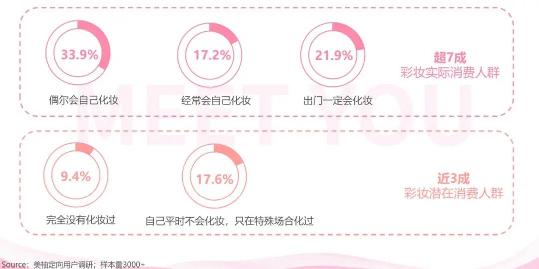 报告将调查对象区分为两类,分别为彩妆实际消费者和潜在消费者。彩妆实际消费者占比超7成,潜在消费者占比近3成。