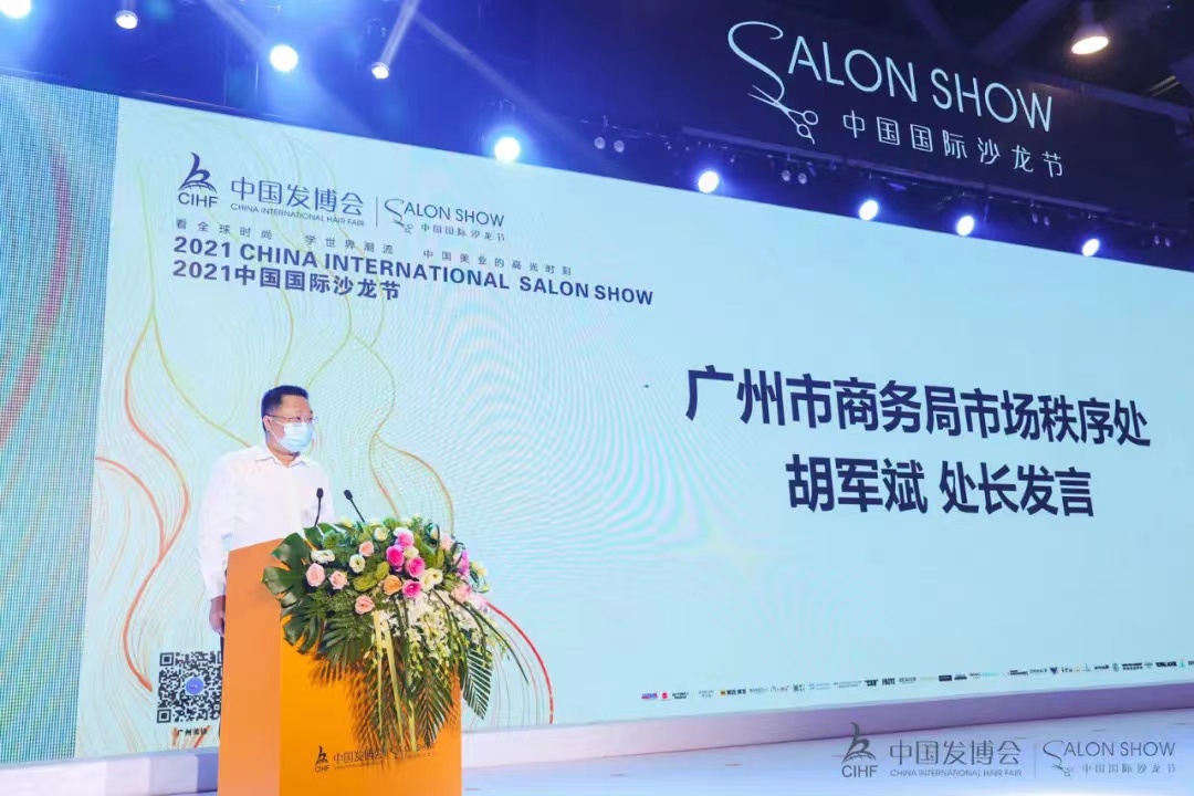 最后,广州市商务局市场秩序处胡军斌处长作总结讲话,对本次2021中国国际沙龙节上举办放心消费专场活动表示肯定。同时,胡处表示,美容美发化妆行业是典型的服务行业,要保持健康持续发展,恪守承诺、诚信经营十分重要,要继续加强政府主导,强化诚信机制建设;加强协会引领,发挥桥梁纽带作用;加强企业担当,践行诚信兴商使命。
