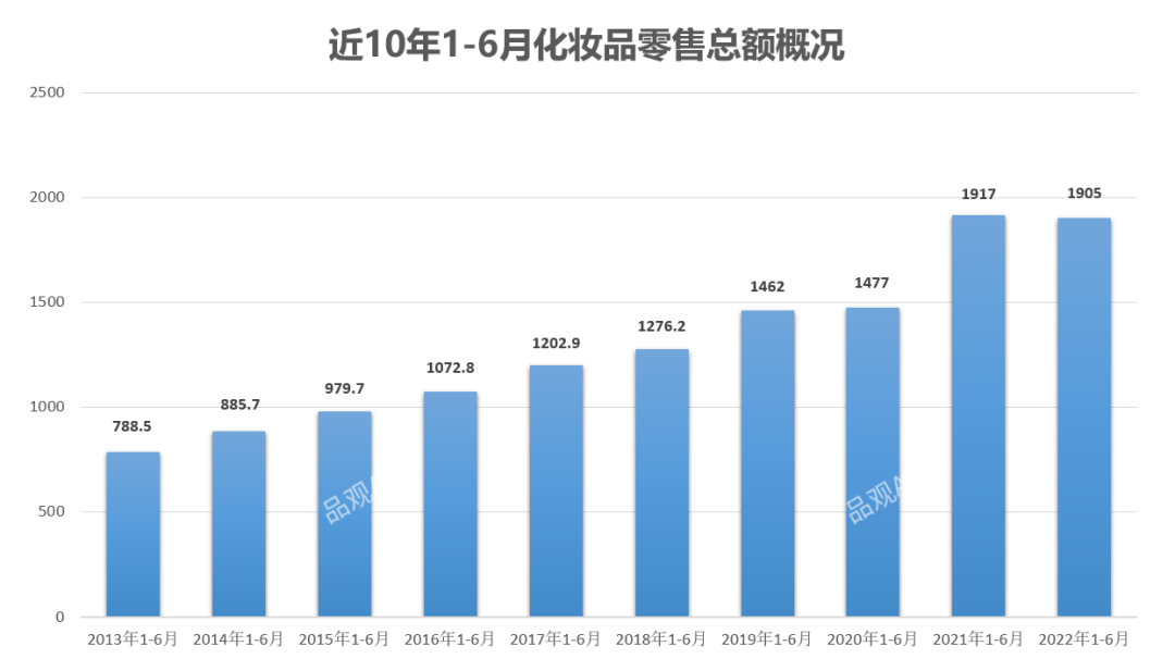 Euromonitor欧睿信息咨询曾预测,2022年,化妆品类零售总额将达6608亿元。如今,时间过半,上半年仅卖了1905亿,不足预期额的三分之一 。