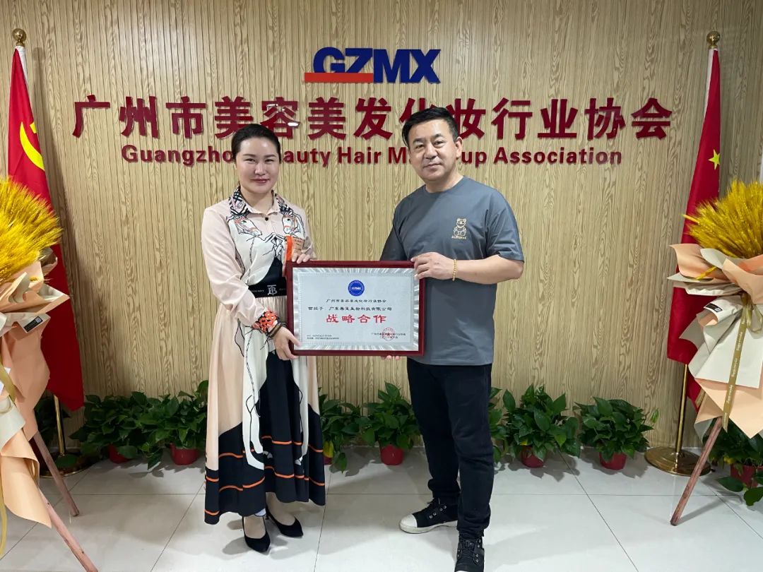 (左:善玺生物创始人韩春悦女士 右:广州市美容美发化妆行业协会副会长秋实)