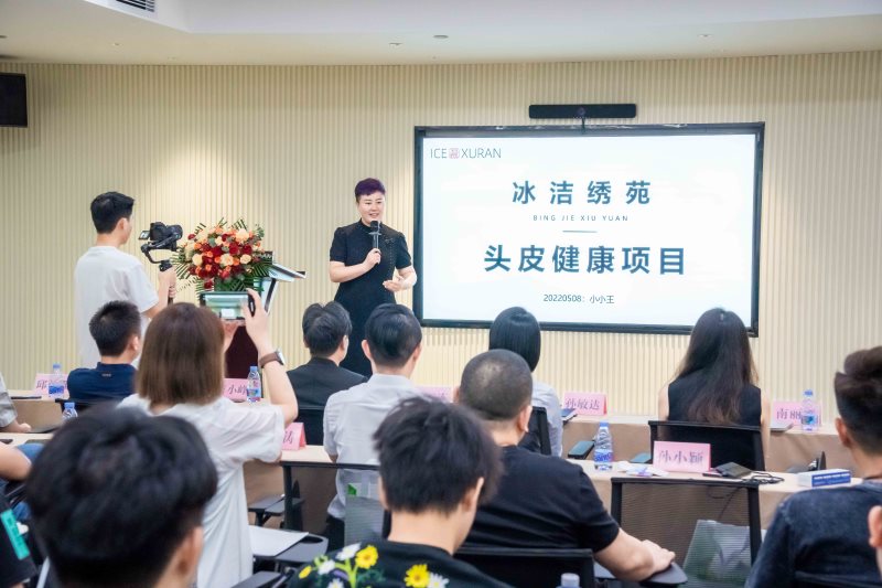 冰洁绣苑广州店执行院长孙小颖为我们带来“头皮健康”主题分享。孙总分别从脱发原因,育发原理,再生干细胞生发原理及重要作用,从供营养、海绵骨针、调周期、生发、补细胞五方面讲述全方位对头皮进行靶向调控。