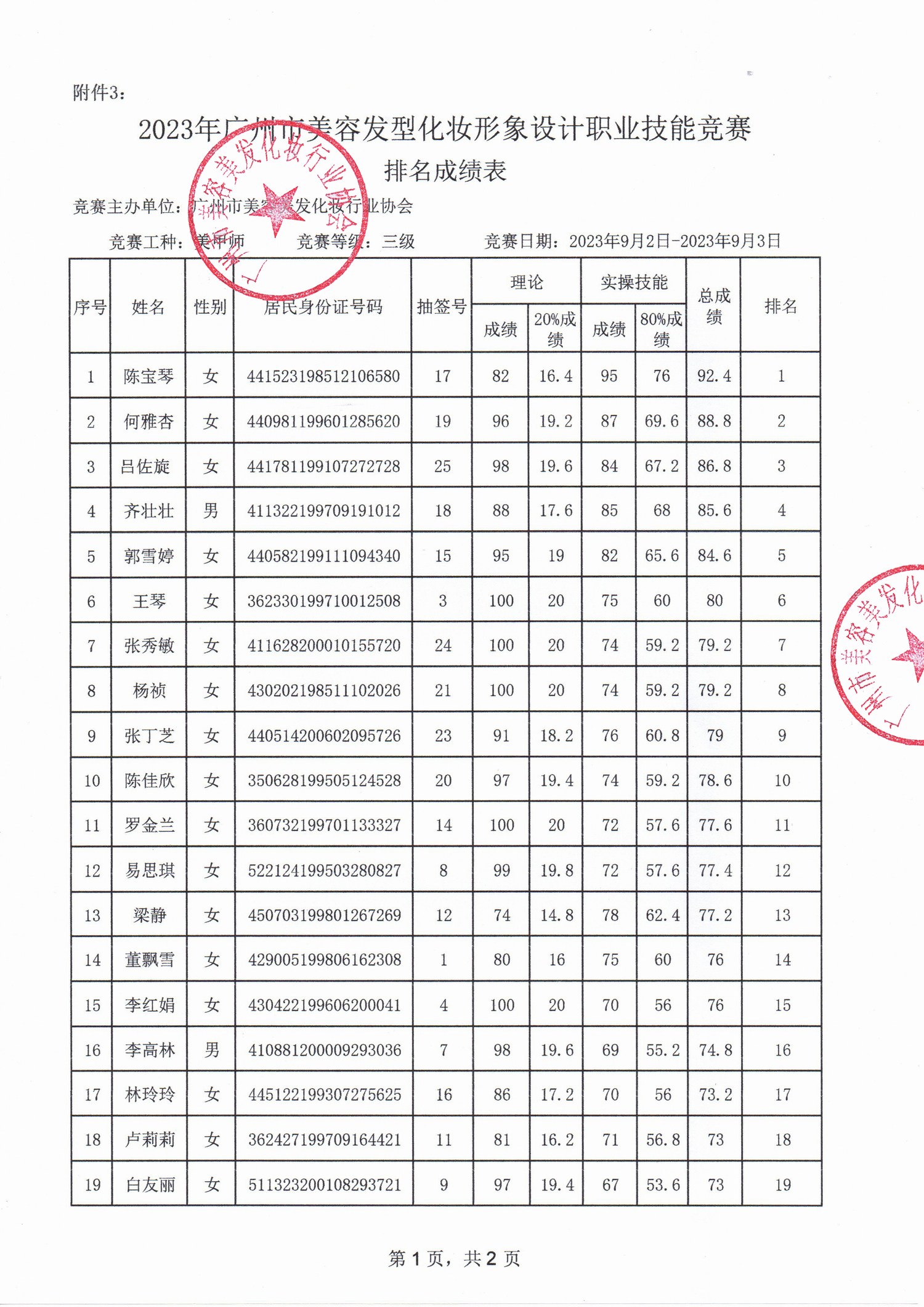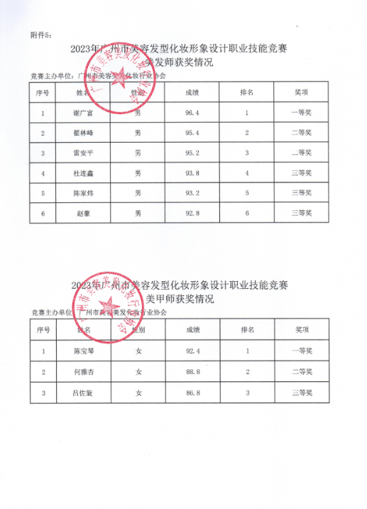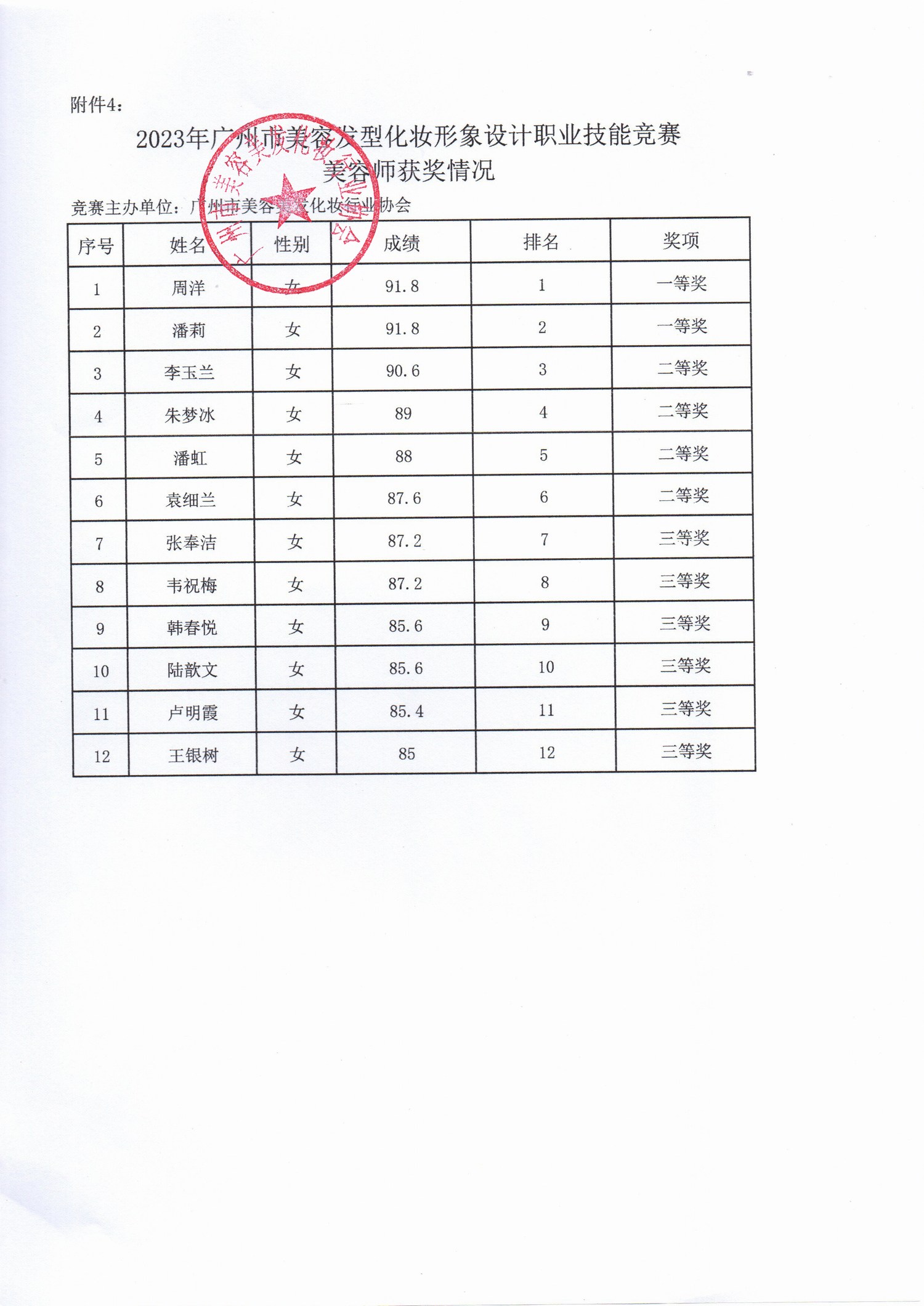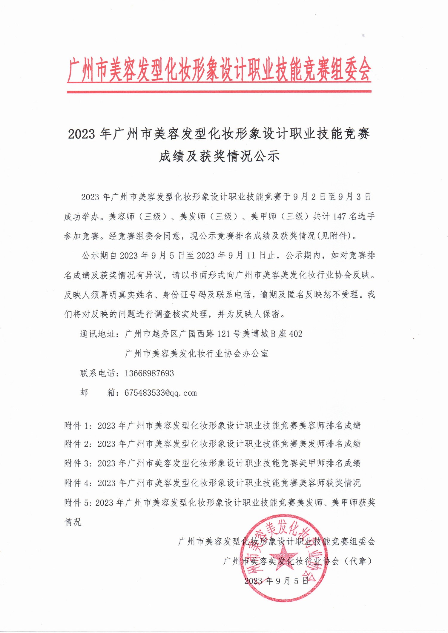 2023年广州市美容发型化妆形象设计技能竞赛成绩排名公示