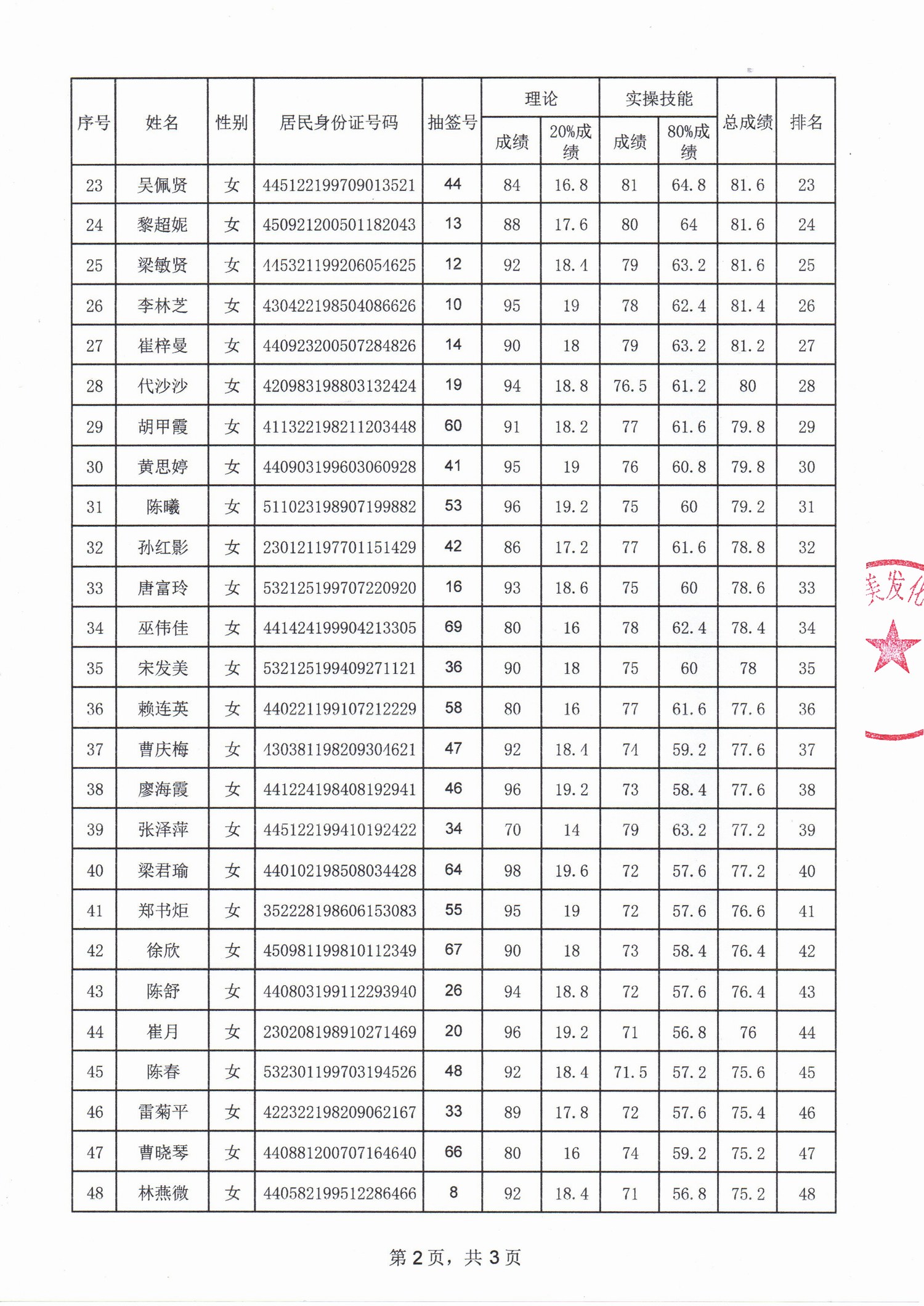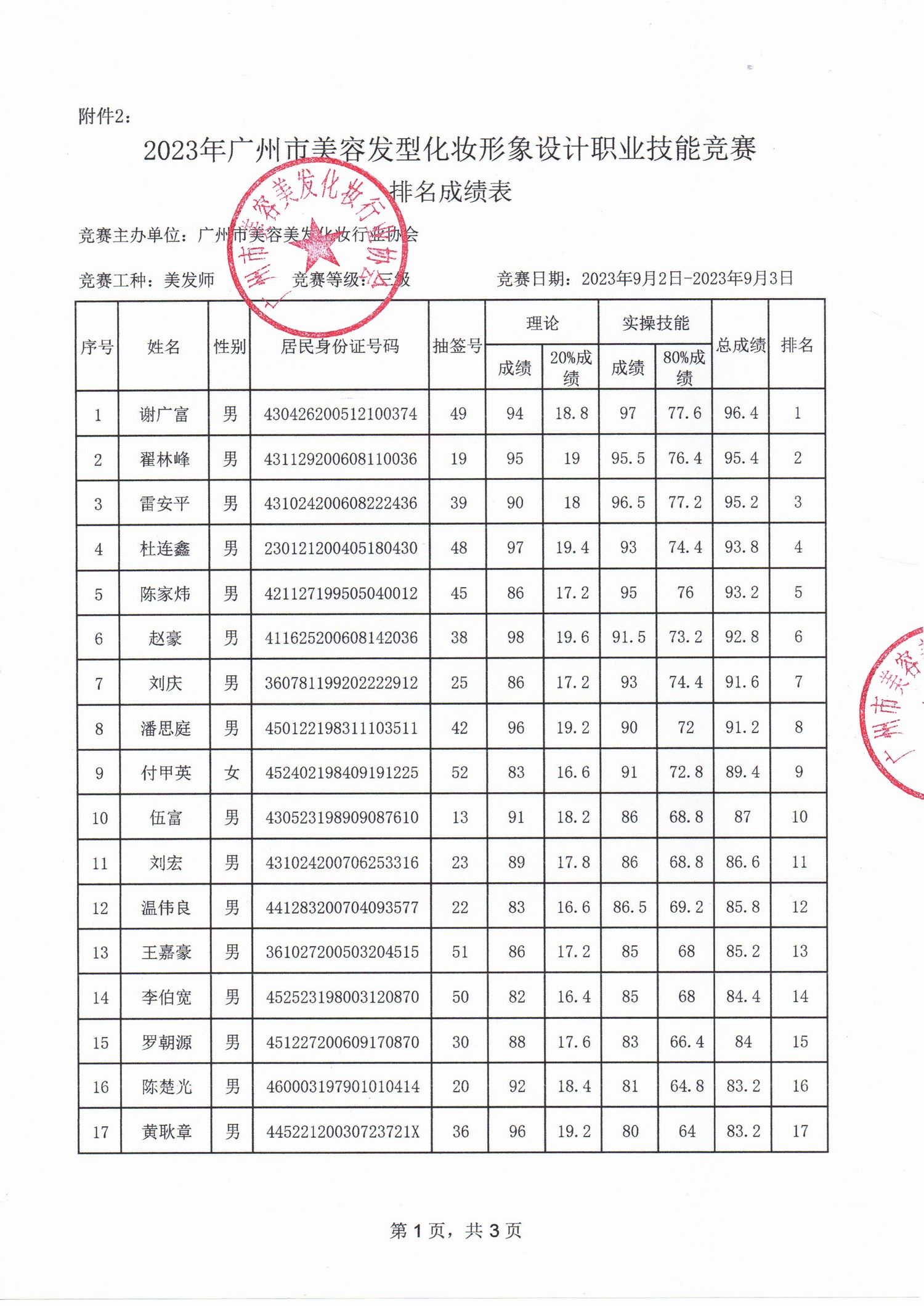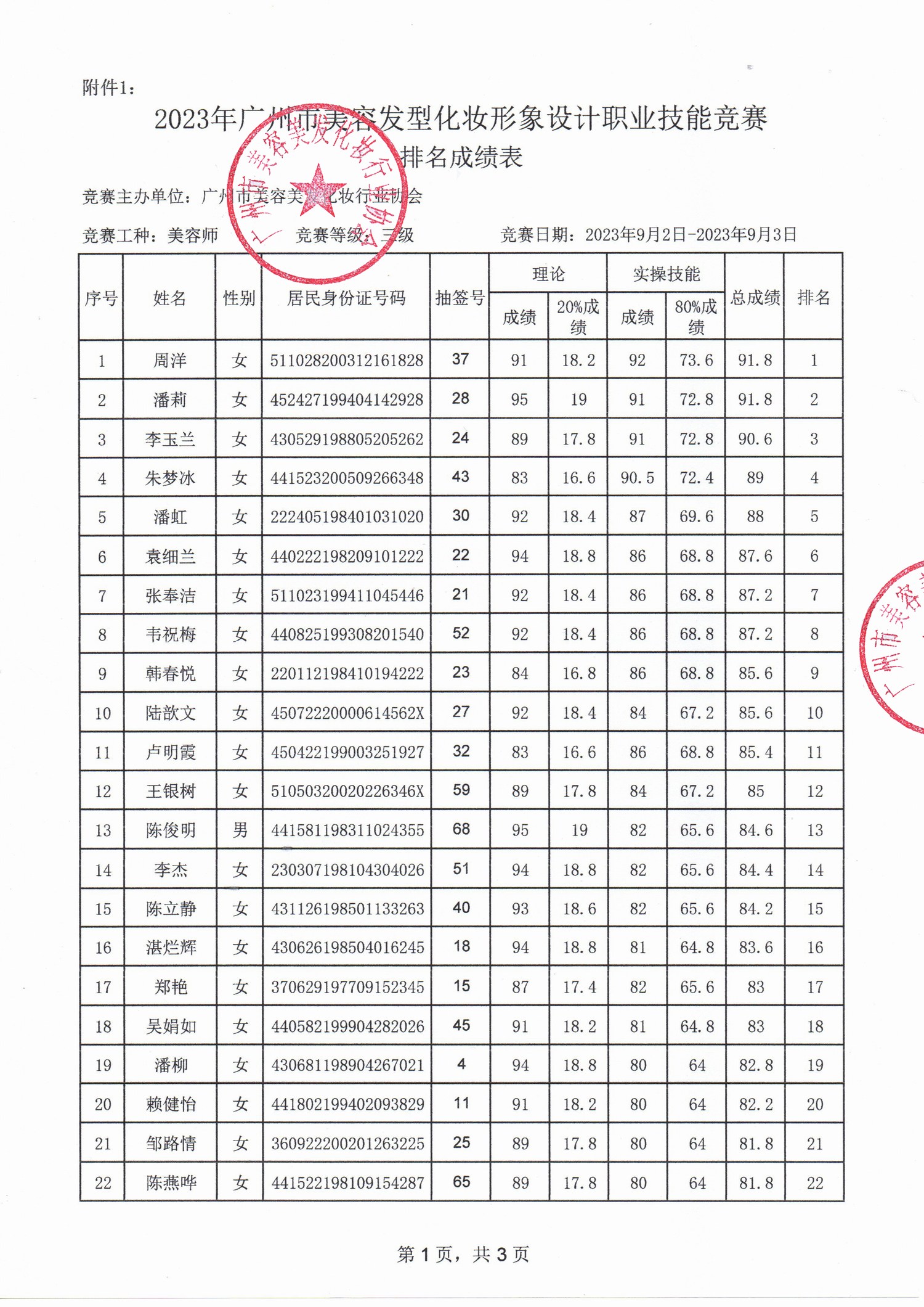 2023年广州市美容发型化妆形象设计技能竞赛成绩排名公示