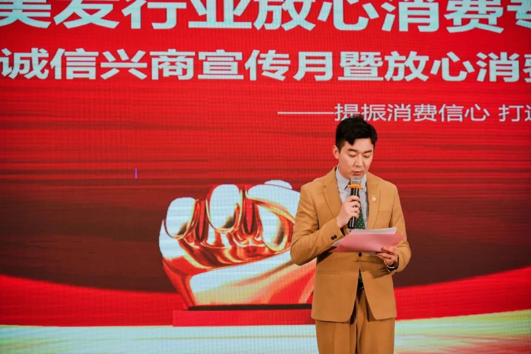 活动开场,主持人介绍了美容美发行业诚信兴商放心消费活动总体情况,并现场发起单用途预付卡经营者“八要八不”倡议、商贸行业“八守八做”诚信经商倡议,呼吁每一位美业经营者,能够积极响应“八要八不”、“八守八做”倡议,严格落实主体责任,强化诚信守法理念、共筑美业安全放心、和谐有序的消费环境。