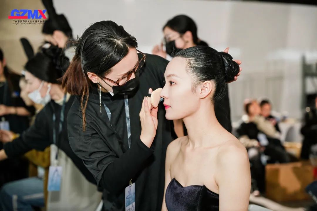在这场盛会背后,广州市美容美发化妆行业协会的会员单位化妆造型团队宛如一群幕后精灵,他们在在化妆艺术家、国家一级化妆师秋实老师的指挥下,用他们的巧手与匠心,编织着美丽的魔法。活动现场,120 位佳丽模特身着华丽服饰,在 T 台上自信摇曳,她们的每一个眼神、每一个步伐都散发着迷人魅力,精彩的表演赢得了观众如雷般的掌声与欢呼声。而这令人瞩目的背后,离不开全体化妆师们的默默付出与精心雕琢。